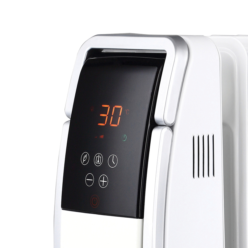 Καλοριφέρ λαδιού Kerosun KOR09EW με 9 φέτες, 3 επίπεδα ρύθμισης θέρμανσης 800/1200/2000 Watt, ψηφιακό πάνελ ελέγχου αφής και ρυθμιζόμενο θερμοστάτη.