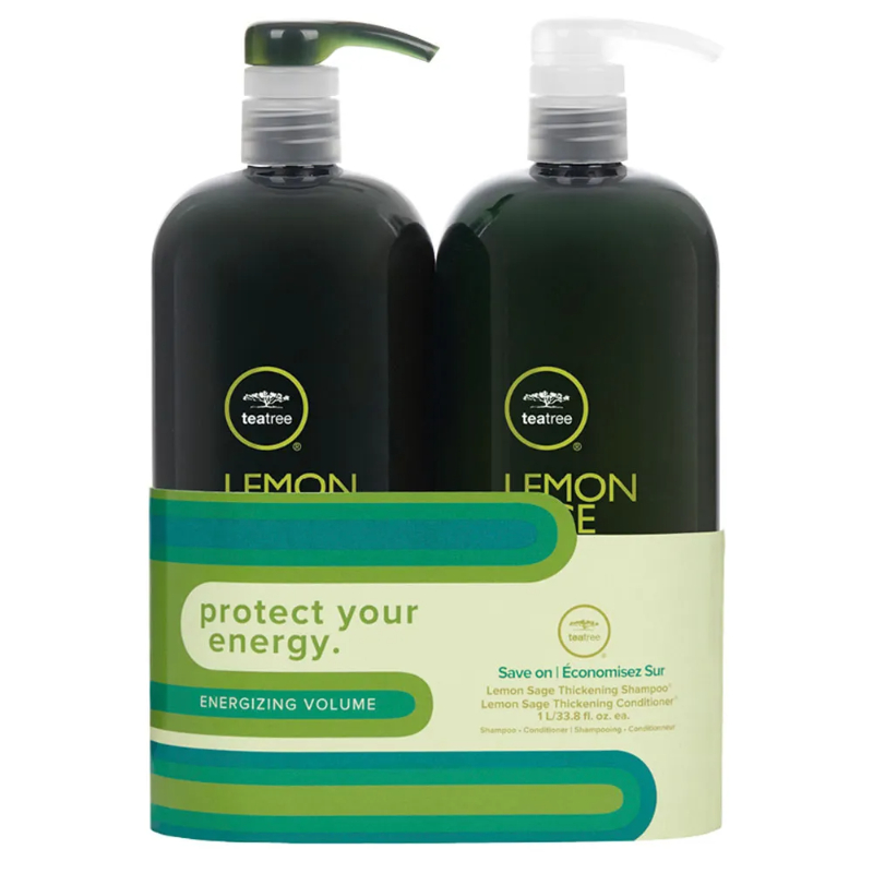 The  Paul Mitchell Save Big On Duo Tea Tree Lemon Sage consists of a shampoo and a conditioner. The hair care set has a revitalizing effect and gives the hair weightless volume. The duo contains a Paul Mitchell Tea Tree Lemon Sage Thickening Shampoo 1000 ml and a Paul Mitchell Tea Tree Collection Lemon Sage Thickening Conditioner 1000 ml.