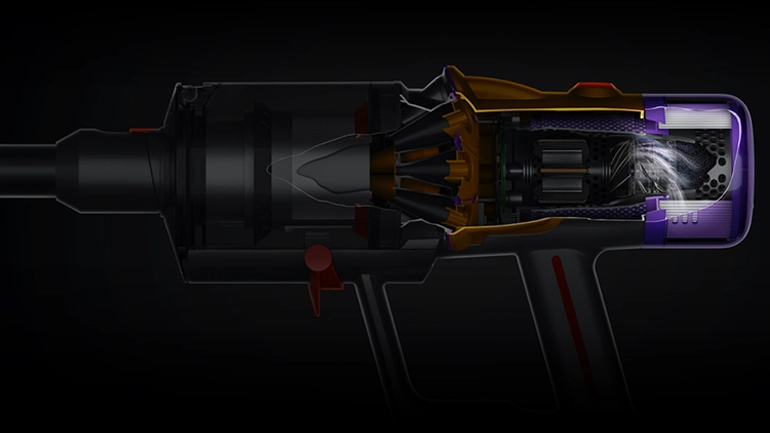 Up to 60 minutes of continuous suction power.(3)The Dyson Hyperdymium motor spins at up to 125,000rpm, creating powerful suction for deep cleaning.