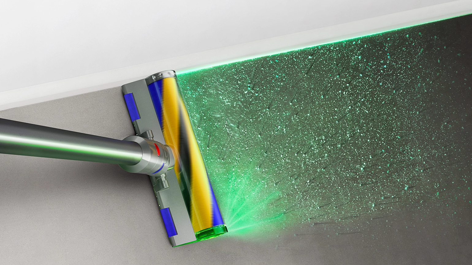 A precisely angled beam of light makes invisible dust visible on hard floors - so you don't miss anything.