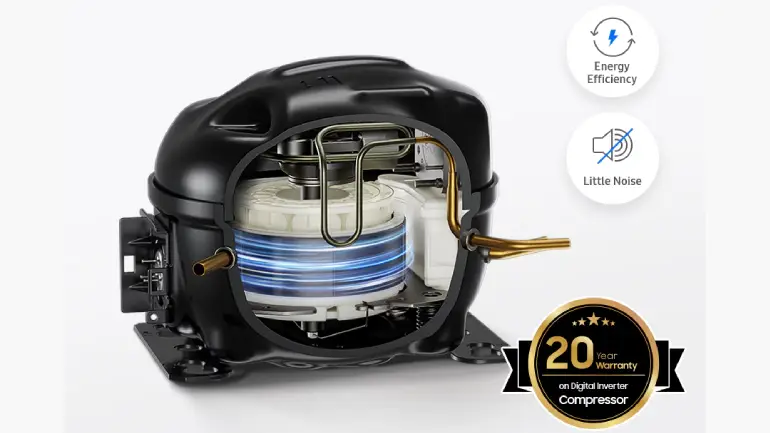 Enjoy smart energy use and long-lasting performance. The Digital Inverter Compressor automatically adjusts speed according to cooling requirements. This results in low noise levels and is backed by a 20-year warranty on the Inverter compressor (only on the spare part after the 5th year)*.