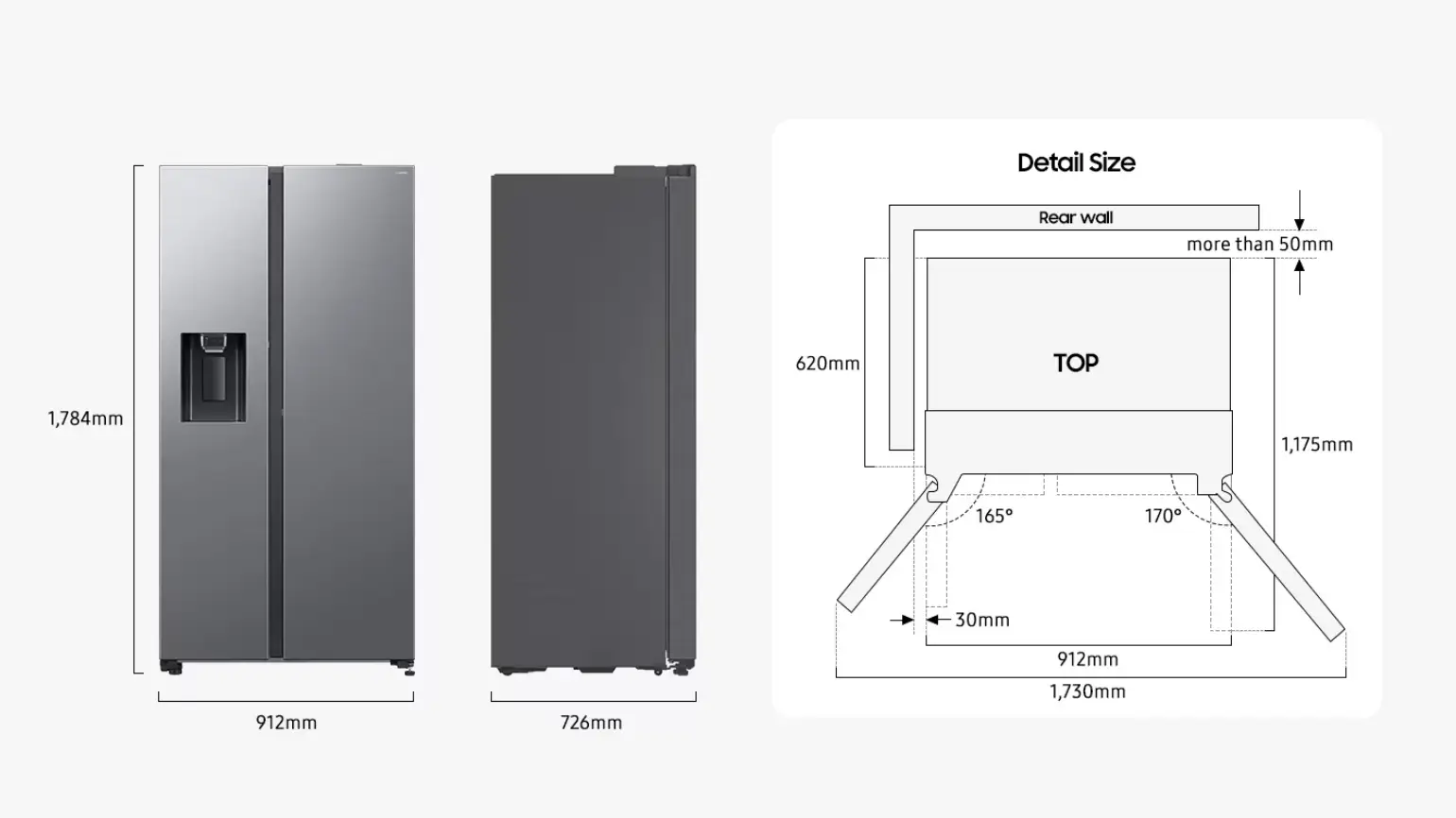 | Dimensions (LxWxH) | 726 × 912 × 1,784 mm |