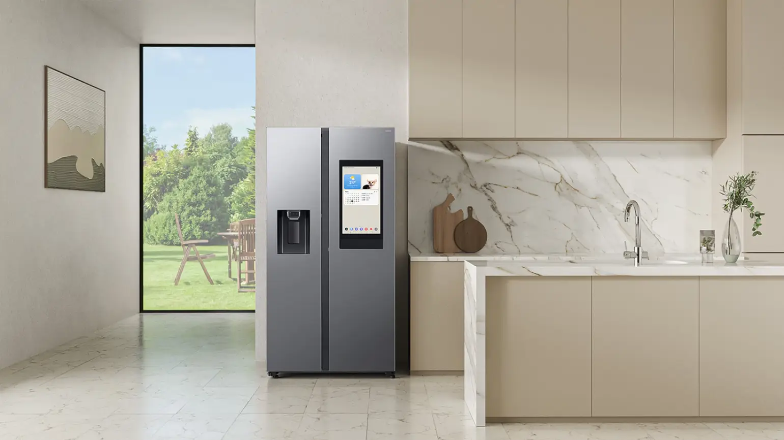 Enjoy a convenient way to control your refrigerator. Samsung Bixby* is built in, so you can control settings, select functions, and ask questions by speaking in English. And with the latest update, it now communicates based on previous conversational contexts and can recognize multiple commands in a single sentence**.