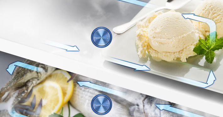 The Twin Cooling Plus system cools the refrigerator and freezer compartments separately, preventing unwanted odors from mixing from the refrigerator to the freezer. This way, frozen foods retain their original taste.