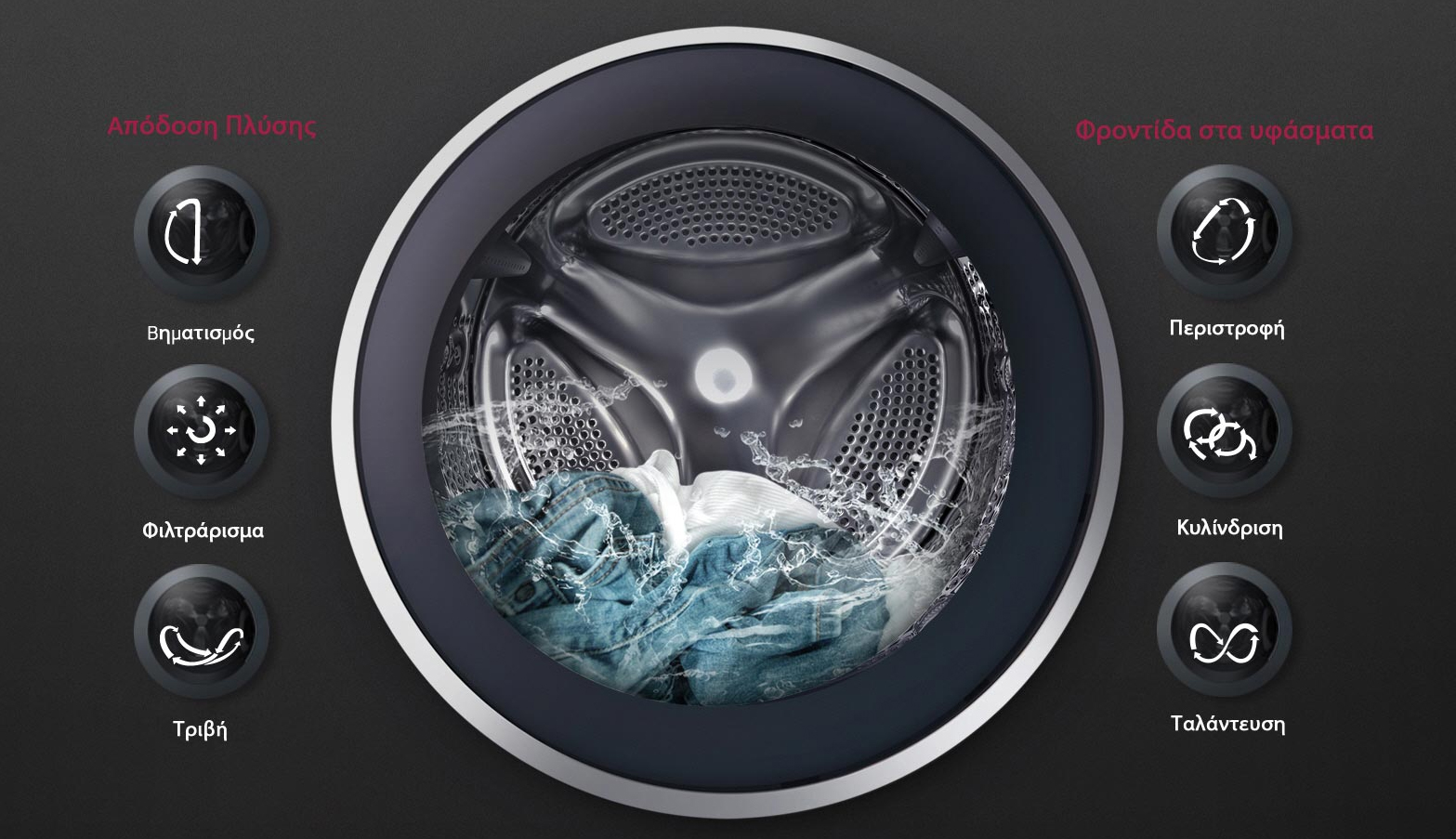 For optimal fabric washing After you select a washing program, the 6 Motion Direct Drive technology takes over and moves the washing drum in multiple directions, giving fabrics the proper care while perfectly cleaning the clothes.
