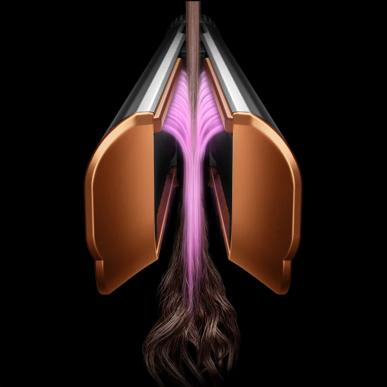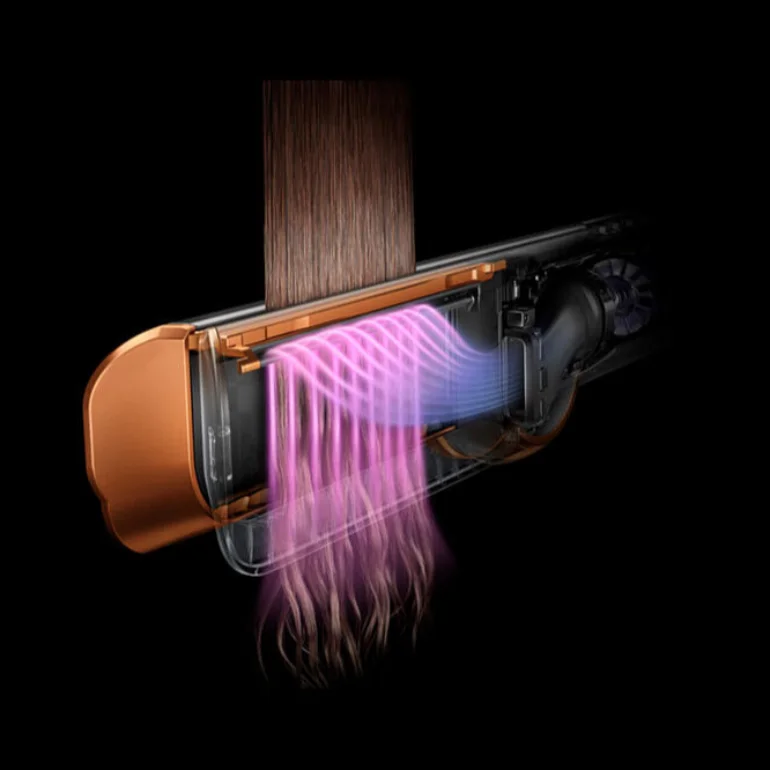 Dyson's new hair care technology uses high-pressure airflow to straighten your hair as it dries. The air is precisely heated and directed evenly during styling, without relying on excessive heat.