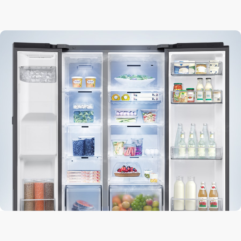 With this feature, your food always stays fresh, on every shelf and compartment. The All-Around Cooling function ensures an even temperature in every corner of your refrigerator, keeping food at the right temperature. It constantly monitors the temperature and circulates cool air to every spot, through strategically placed air vents.